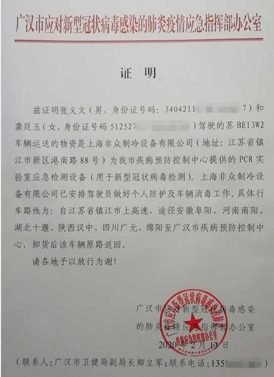 眾有實(shí)業(yè)旗下上海非眾制冷設(shè)備有限公司為四川省廣漢市疾病預(yù)防控制中心PCR實(shí)驗(yàn)室(用于新型冠狀病毒肺炎檢測)提供的凈化型恒溫恒濕空調(diào)設(shè)備已經(jīng)在最短的時(shí)間內(nèi)以最快的專車運(yùn)輸?shù)男问剿椭良部刂行模糜谝痪€疫情防控。
