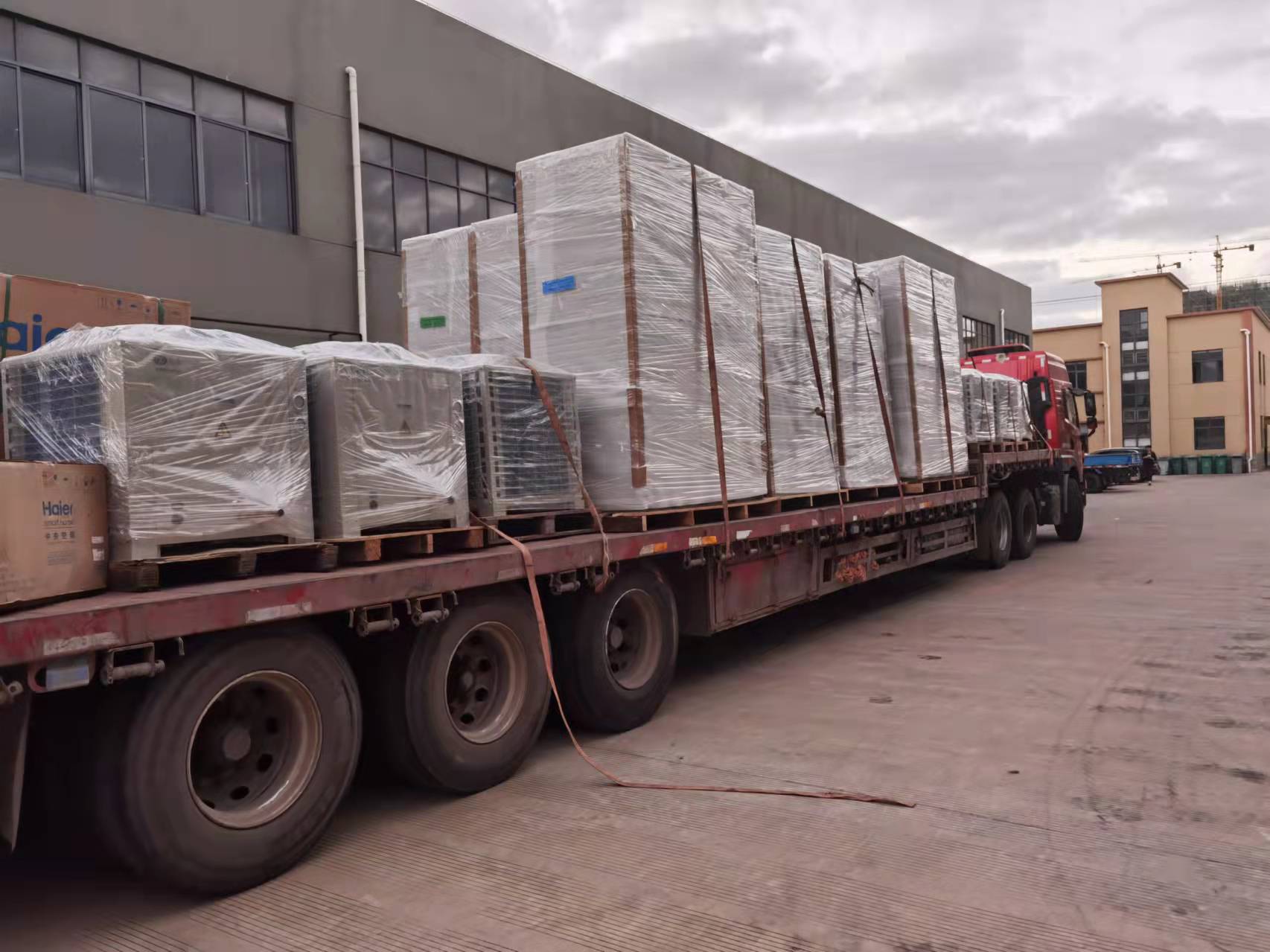 春節(jié)臨至,夏季的臨時(shí)迎來(lái)了制冷空調(diào)最忙碌的旺季。在上海眾有的廠區(qū),記者看到,幾輛大貨車車在等待裝運(yùn),數(shù)名裝卸工人正在緊張搬運(yùn)貨物。一片繁忙景象,員工們正在全力裝運(yùn),寓于著2022年里上海眾有定戰(zhàn)而全勝!